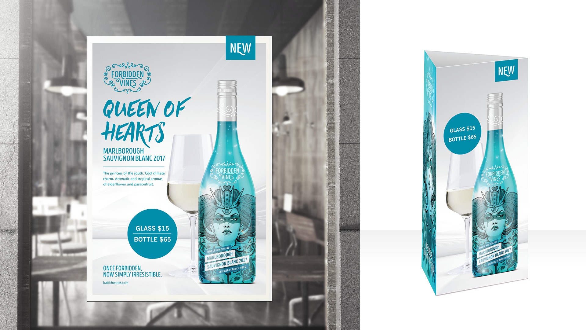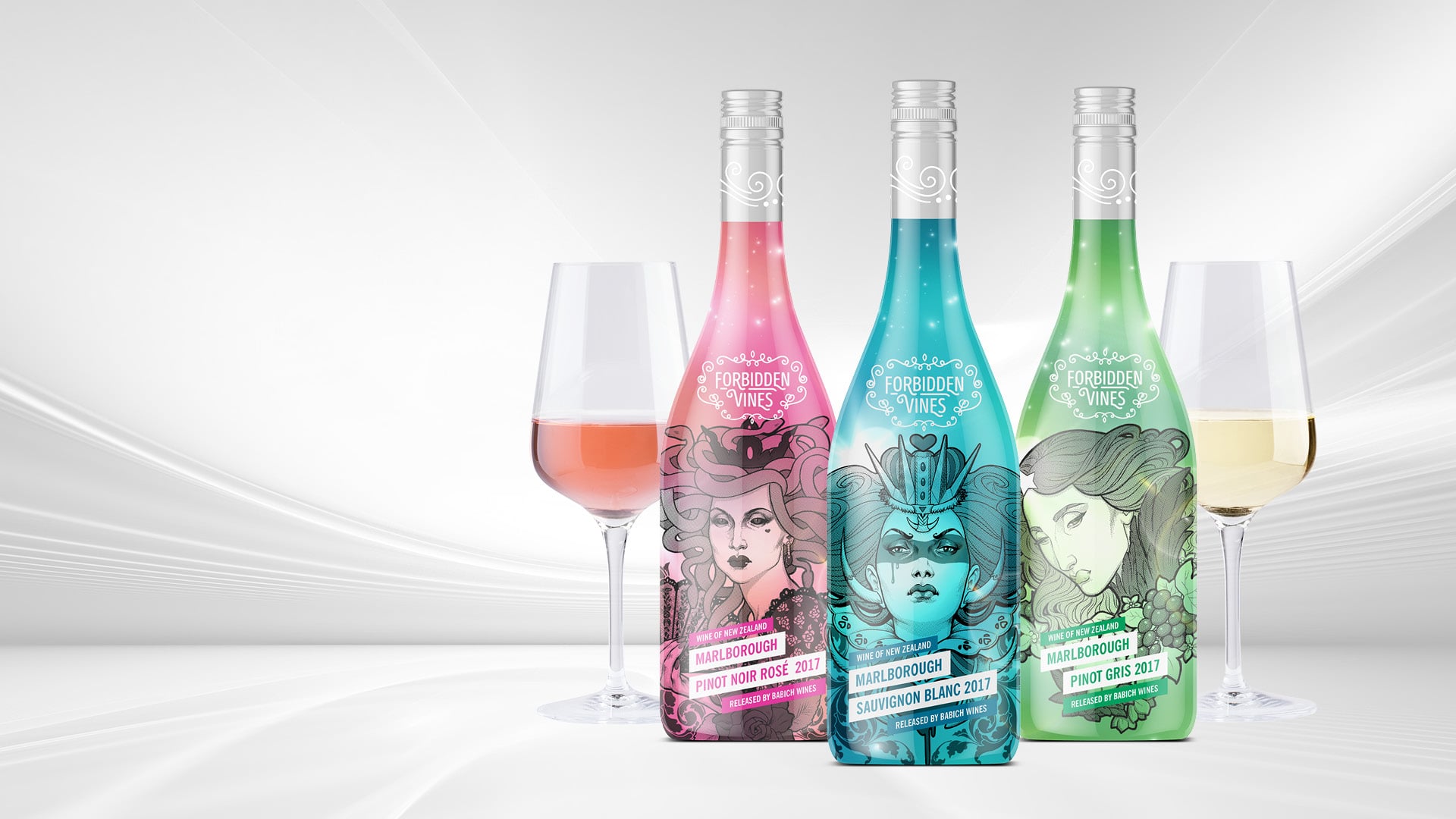 The Forbidden Vines name, brand, stories, design and packaging was created by Spitfire for Babich Wines.