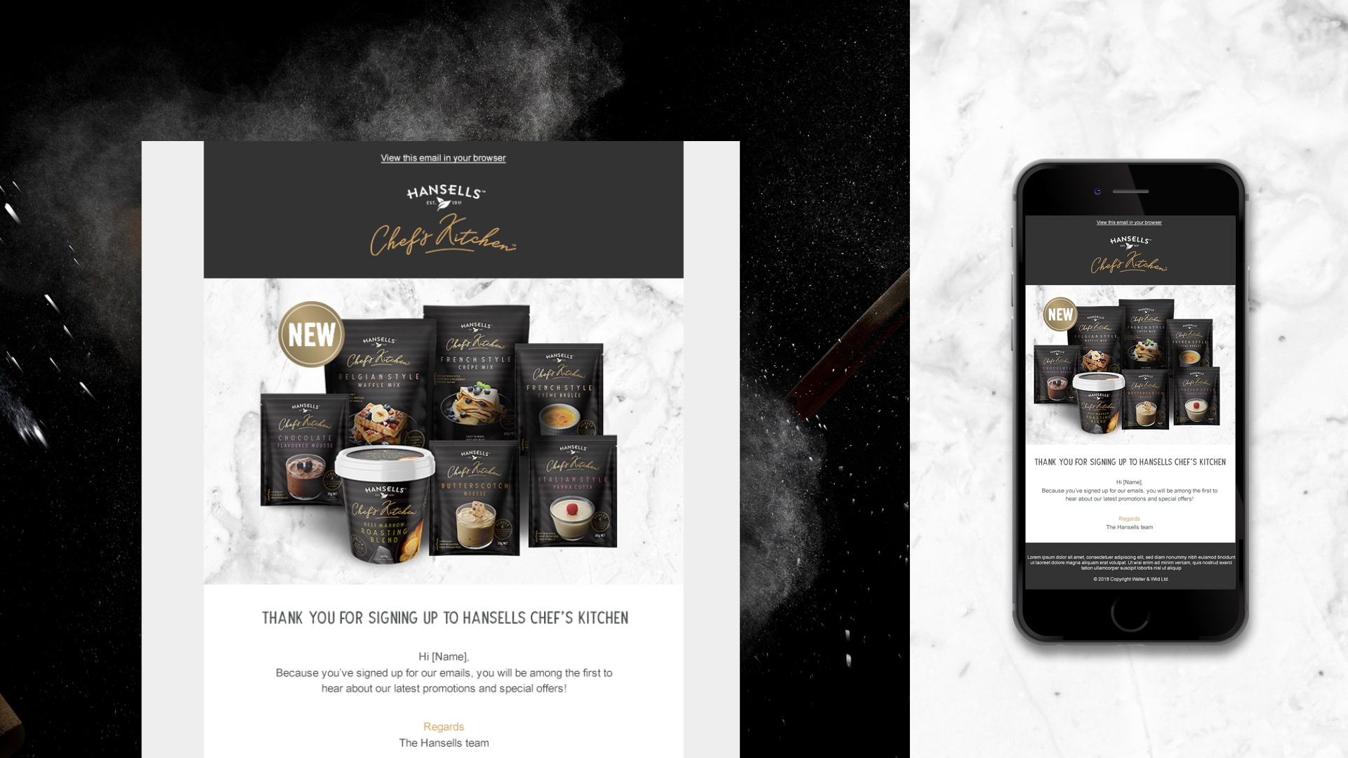 Cooking great food just got easier with the new Hansells Chef’s Kitchen Range. Roasting blends and mouth watering baking and desert blends to to help home cooks create restaurant quality dishes. Spitfire is the digital agency for Hansells (now part of Walter & Wild ltd).